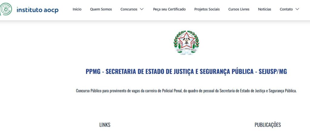 Site banca examinadora Instituto AOCP concuso SEJUSP MG 2025