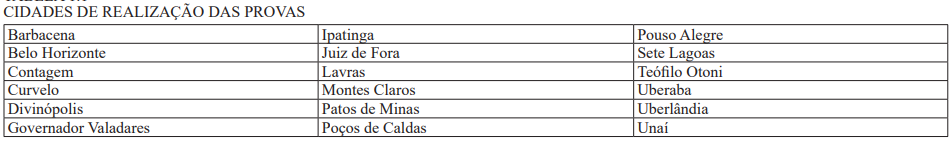 A prova objetiva e redação o candidato serão realizadas nas seguintes cidades: